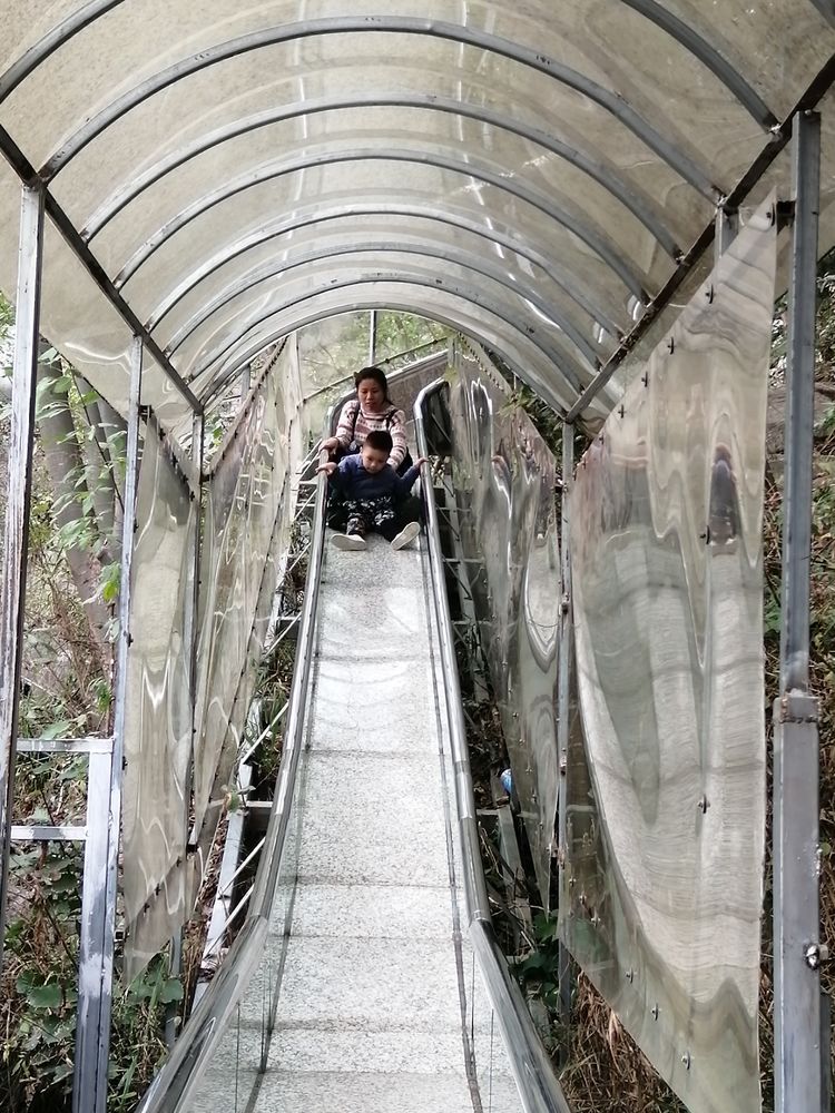 景交车在崎岖蜿蜒的山路上沿着上下起伏360度的弯道行驶,景交车司机车技娴熟,安全把我们送到桃花潭体验玻璃桥和玻璃滑道。