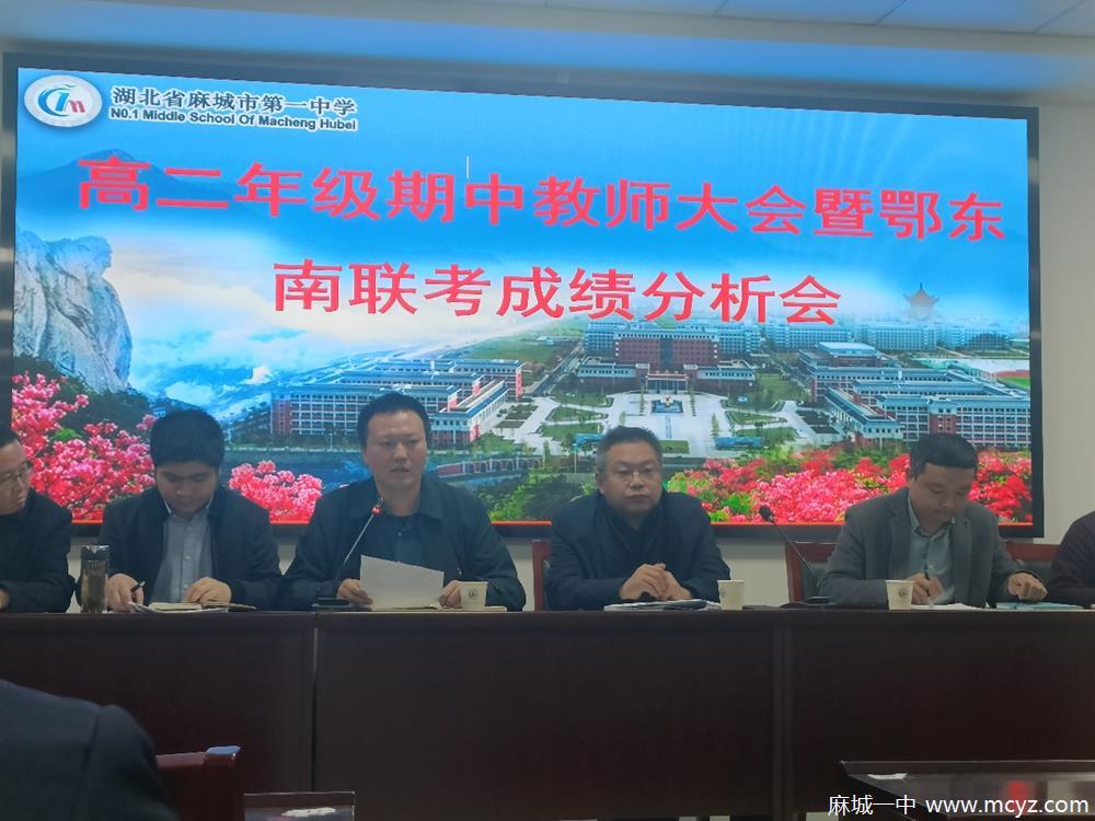 时光荏苒,在不知不觉中本学期已经过半,期中考试也如期进行。为进一步总结期中考试经验,查找不足,强化教师的角色意识、质量意识,调动学生的学习积极性,2023年4月28日晚七点,麻城一中高二年级在厚德楼一楼会议室召开2023年春季学期高二年级期中教师大会暨鄂东南联考成绩分析会。出席会议的领导有校长吴宏文、高二年级主任王辉、胡欣及年级委员会主管邓剑、胡爱平、王值锋、马茜,会议由胡爱平主持,全体高二教师参会。