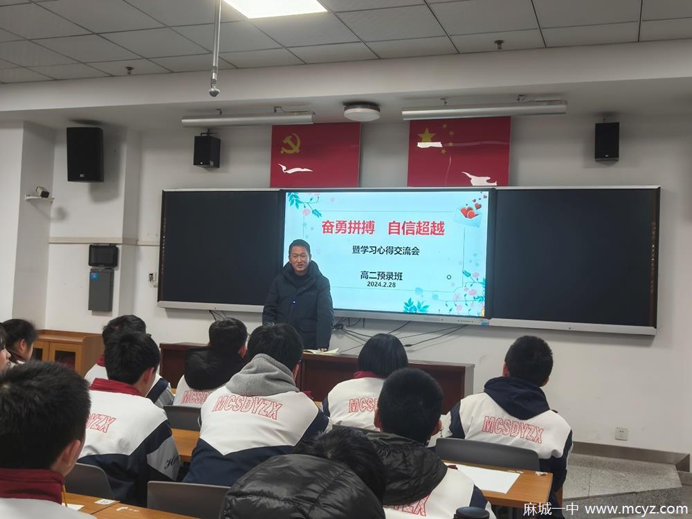 2024年2月28日下午第四节课,高二年级1班和2班举行预录班联合班会。学生代表结合高二预录班数理生竞赛培优,以及寒假外出学习谈个人的心得体会,交流学习经验,相互取长补短。会议邀请了办公室副主任、高二年级副主任张钟敏老师作指导。班会活动由林飞合老师主持。