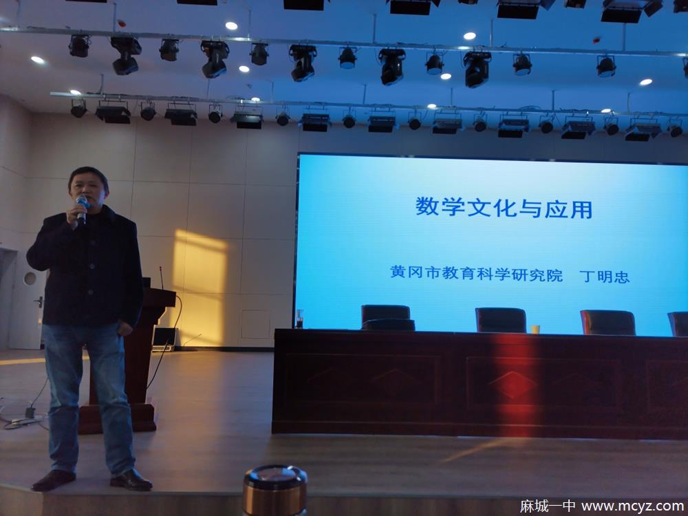(通讯员 董路通)2021年12月2日,黄冈市教育科学研究院丁明忠老师莅临麻城一中,为我校高三全体学生以及高三全体数学老师做题为“数学文化与应用”的专题讲座,全体师生如沐春风,受益匪浅。