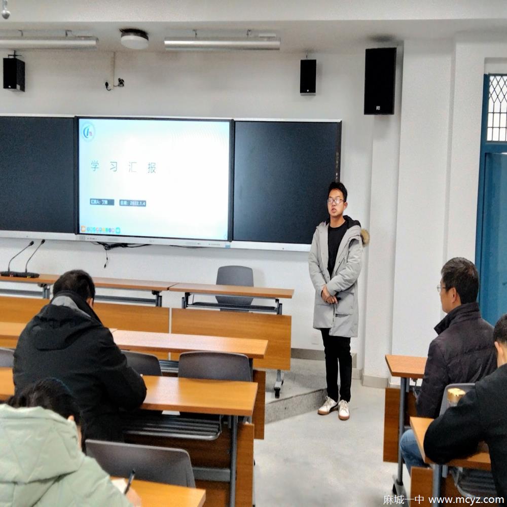 2022年1月4日上午,数学组于启智楼二楼会议室进行“麻城一中讲坛”第四期开课活动,由丁评虎组长主持,彭校长及数学组全体教师参与此次讲坛听课活动。